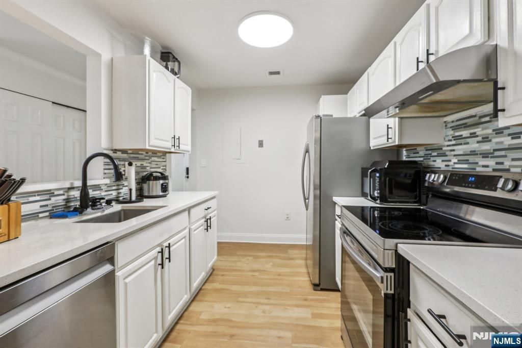 | Rarely available, this renovated first-floor 2BR/2BA Smart home is one of the largest units in sought-after Crown Village, offering approx. 1,250 SF (about 200 SF more vs. the smaller 2BR layouts), plus no-stairs living & a quiet setting away from River Rd. | The split-BR layout offers separation & privacy, w/ a spacious LR/DR area, good closet space throughout, an oversized 20' x 13' primary BR that easily fits a king bed & substantial furniture, a real walk-in closet, & en-suite bath, plus a versatile 2nd BR. The partially open kitchen has been updated w/ modern Quartz countertops, backsplash, & SS appliances, & both baths are tastefully updated, while light hardwood floors, recessed lighting, & central A/C & forced air heat add to the home's move-in-ready appeal. Just off the LR, a private patio screened by tall hedging adds outdoor privacy & extends the living space. | Add'l highlights include in-unit washer/dryer, one assigned parking space directly in front, add'l parking available for a fee, & ample guest parking. HOA covers 1 parking, heated pool, fitness center, water, & landscaping/snow. | Crown Village is loved for its true sense of community, lower carrying costs than almost every other condo in town, & unbeatable value & convenience. The location feels close to perfect for everyday Edgewater living, w/ Whole Foods, Trader Joe's, restaurants, waterfront access, & NYC bus/free ferry shuttle, all just a stone's throw away. | TEXT Michael @2012849009 private tour.